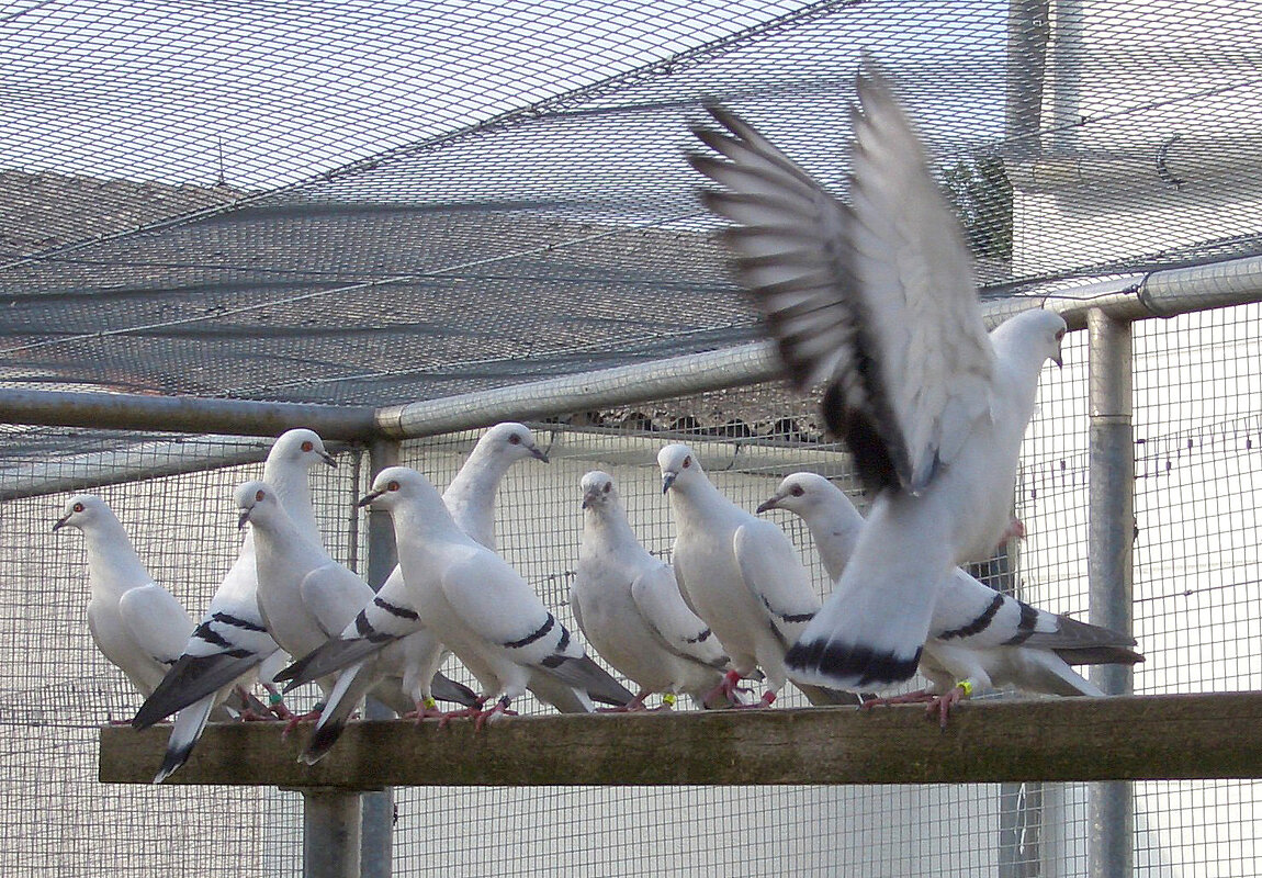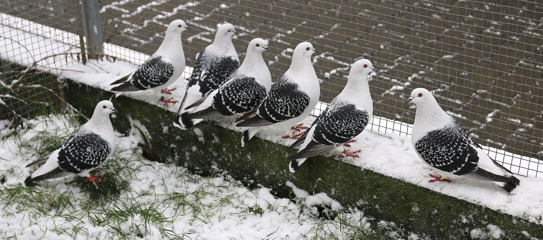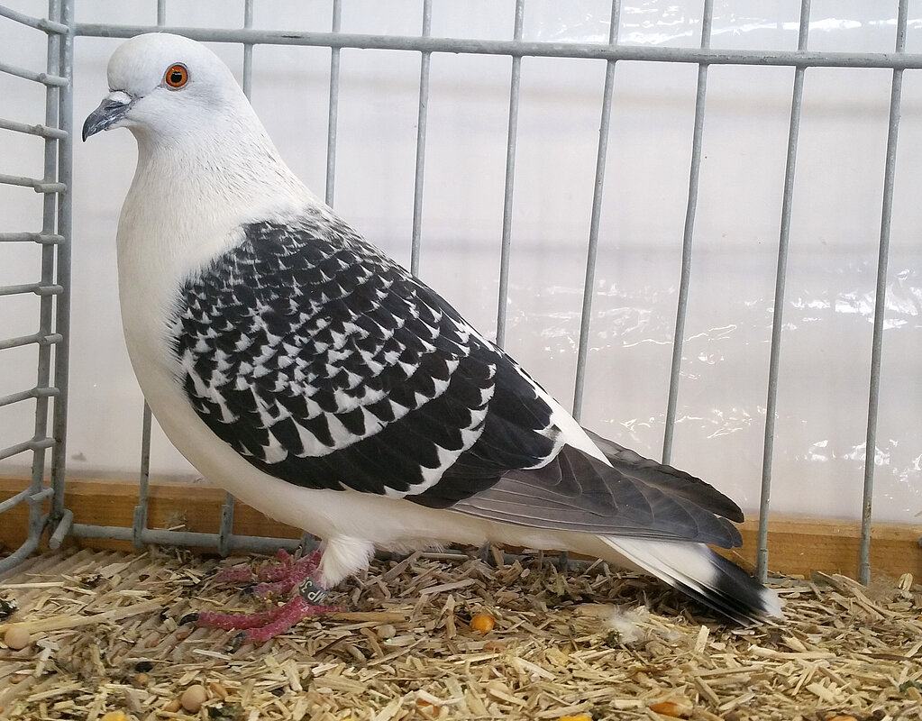 Auch die belatscht weißbindigen Eistauben haben sich in den letzten Jahren deutlich verbessert und zeigen überragende Rassevertreter an der Spitze. Die Zuchtbasis ist deutlich geringer im Vergleich zu den Hohligen. Der Zuchtstand ist insbesondere hinsichtlich Schwingen- und Schwanzbindenfarbe noch nicht so sehr gefestigt. Teilweise zeigen die Schwungfedern eine unerwünschte Säumung an den Schwungfederrändern, hierauf muss züchterisch geachtet und mit Fingerspitzengefühl bei Bewertung hingewiesen werden. Wünsche bezüglich Bindenverlauf und Bindensaum werden immer Angriffspunkte bei der Qualitäts-bewertung sein.